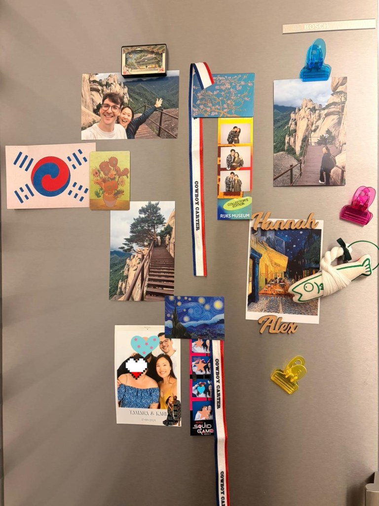 As I let myself daydream on and on about the friends and what life they have built since I last saw them, the decorations my boyfriend and I made on the fridge door caught my eyes. There were Cowboy Carter bracelets I got from Beyonce concert last year in London, along with photos, magnets and postcards we collected from the recent trips.